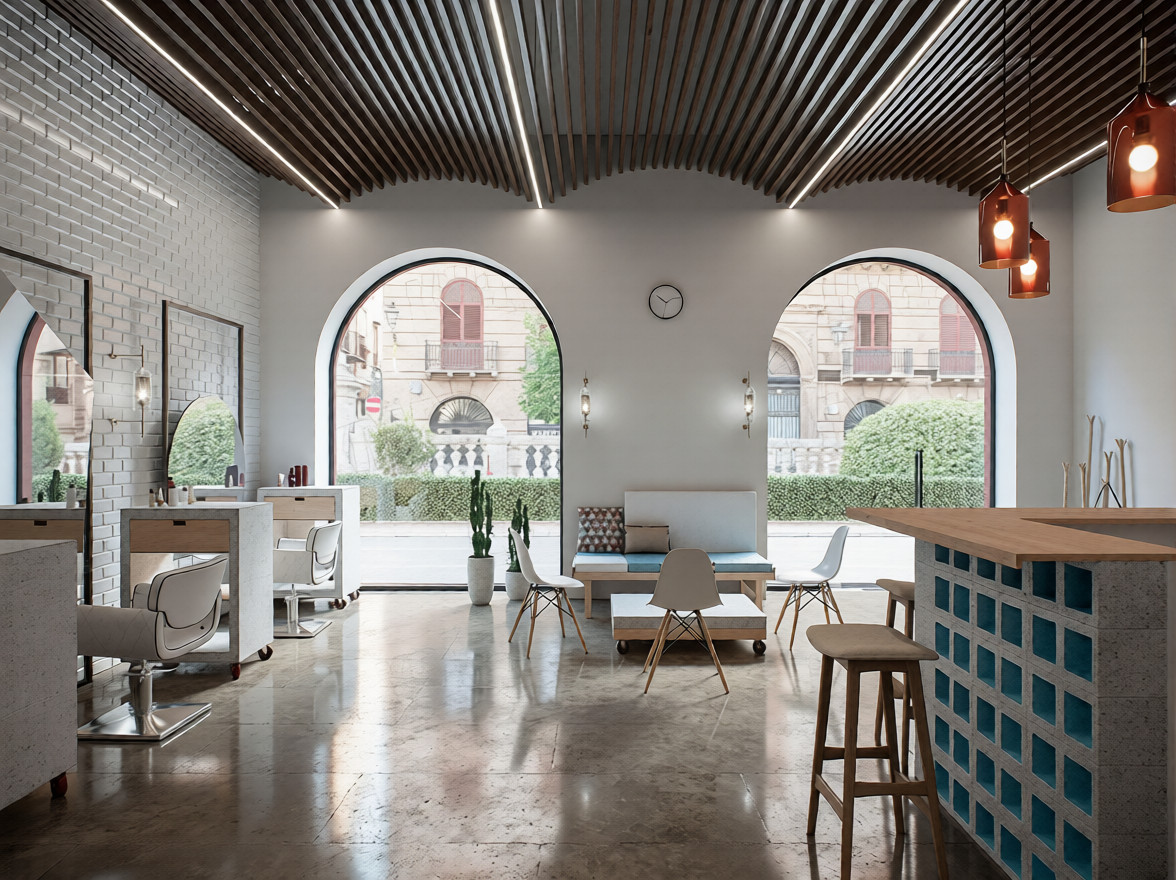 Достаточно часто в интерьере барбершопов или барбербаров присутствуют элементы лофта.